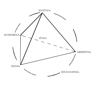 O tripé da sustentabilidade forma assim um tetraedro, com o quarto vértice